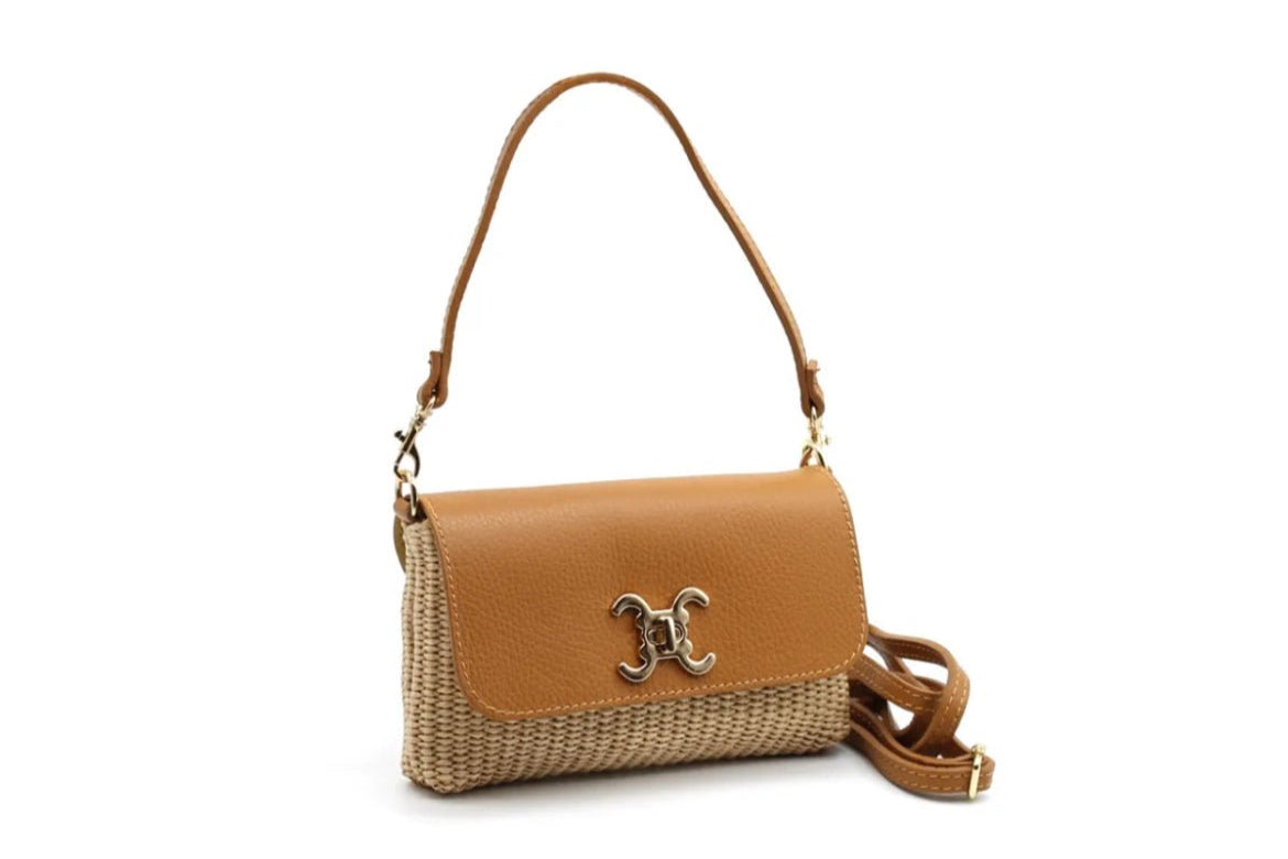 Leather and Raffia Shoulder Bag – Compact elegance and practicality