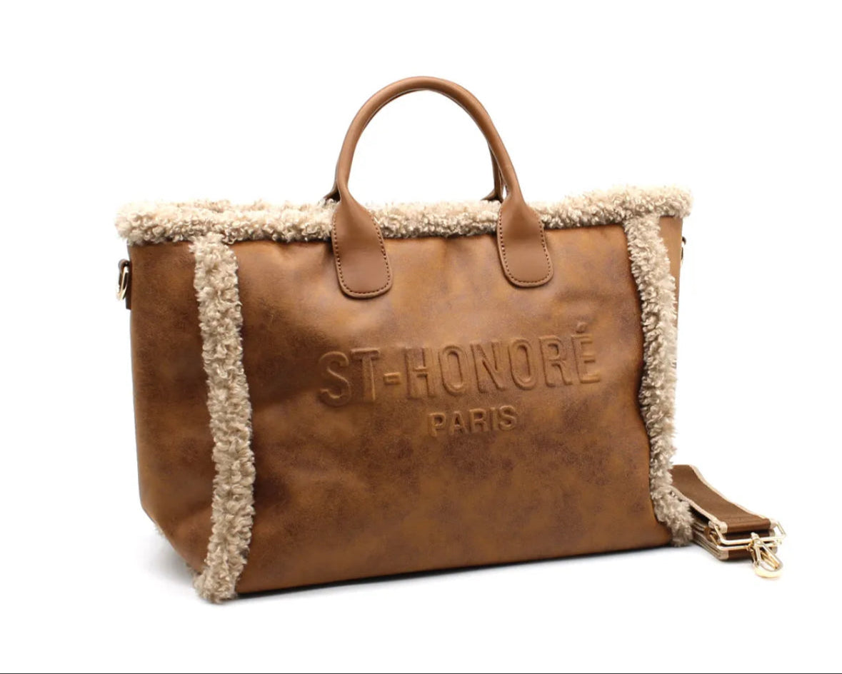 Sac cabas St Honoré en simili cuir camel et finitions moumoute – Volume généreux et style texturé
