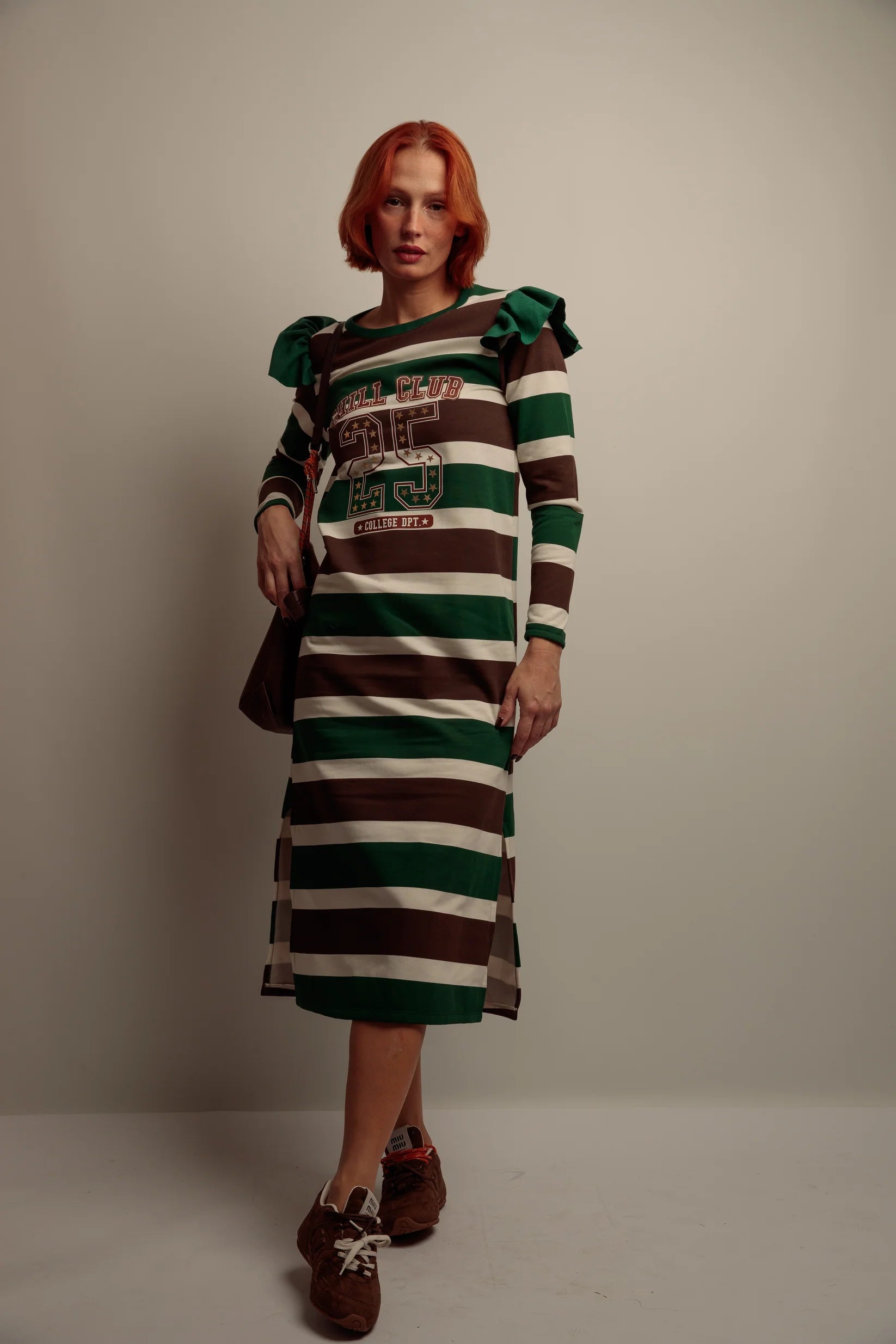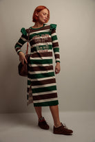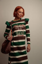 Un modèle long au tombé naturel, imaginé pour offrir confort et aisance au quotidien. Sa coupe droite et ses fentes latérales permettent une belle liberté de mouvement, tandis que le coton à rayures et l’intérieur molletonné enveloppent le corps d’une douceur agréable. Le volant contrasté à l’épaule apporte une touche travaillée, discrète et féminine.