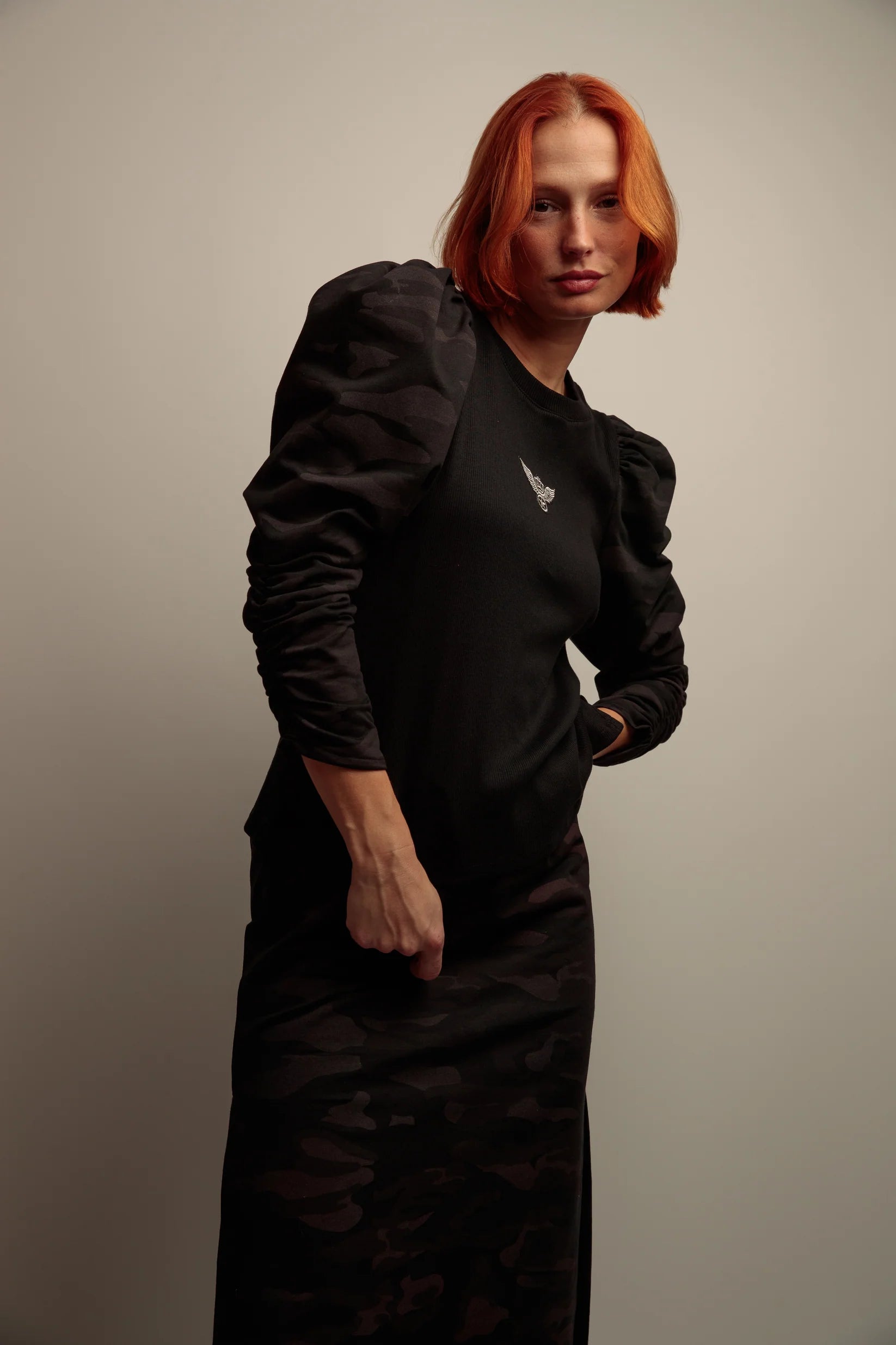 Conseil mode : a associer avec une jupe taille haute ou un jean noir pour mettre en valeur le volume des manches et le detail brode