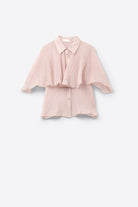 Pink textured chiffon blouse with drop sleeves