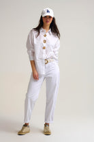 Chemise en coton popeline décontractée blanche avec boutons décoratifs dorés