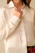Discover our elegant white satin blouse with long sleeves and a classic polo collar. With a stylish button-down closure, it can be worn as a chic blouse or a trendy jacket. Made from high-quality viscose fabric, this lightweight blouse offers both comfort and luxury, making it perfect for warm spring and summer days. Versatile enough to be paired with tailored trousers for a polished look or jeans for a casual outing, it's a must-have addition to your wardrobe!