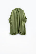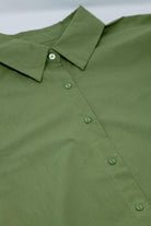 Subcategory: Blouse. Collar: Polo collar. Sleeves: Short sleeves. Fit: Oversized fit. Fabric: Poplin. Closure: Button placket. Runs big. S.