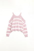 Heather Sweater with Open Shoulders and Horizontal Stripes in Pink