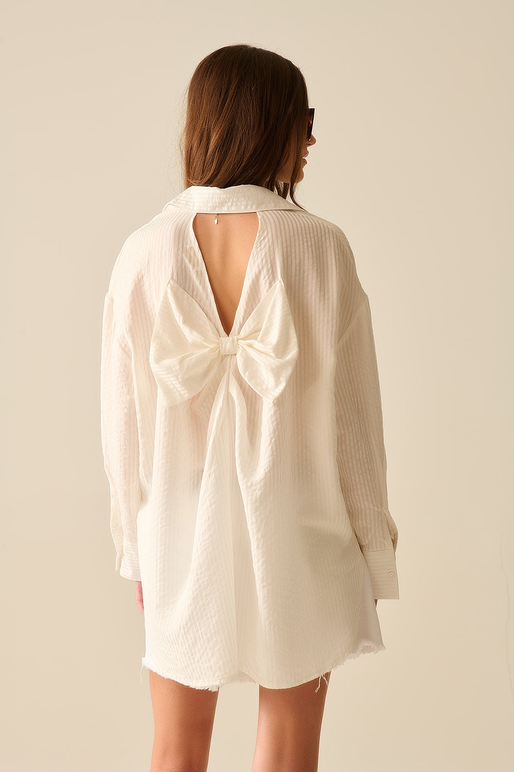 oversized white shirt with bow in the back