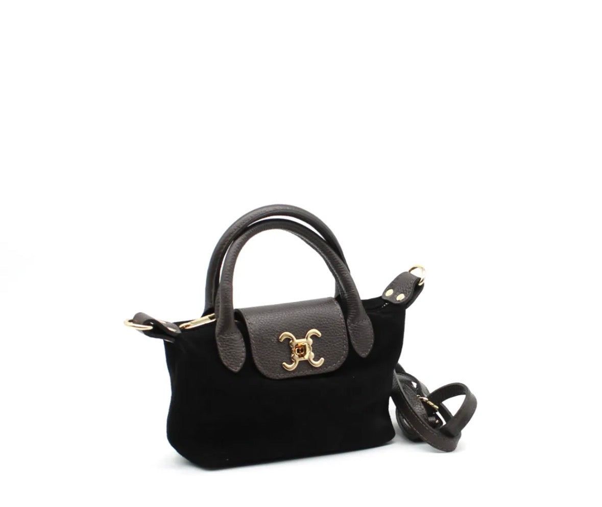 Sac Mini Suede Flap Noir– elegance compacte et pratique