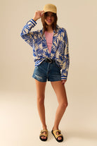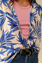 Tropical Pattern Casual Blouse in Blue and White