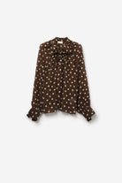 Chemise à pois marron avec détails en dentelle en mousseline de soie