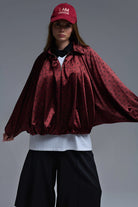 SousCategorie: Manteaux et Vestes. collier: Col polo. Manches: Manches longues. Imprimer: Motif à pois. Coupent: Coupe oversize. Style: Style de tous les jours. Tissu: Tissu brillant effet satin . Fermeture : Fermeture zippée. Bord : Ourlet élastiqué. runs big. U.