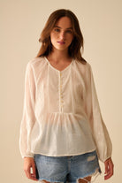 blouse en mousseline de soie blanche avec broderie sur les manches