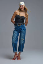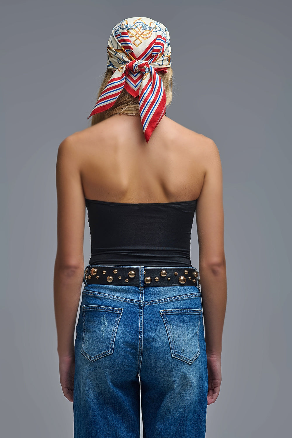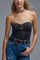 Body noir sans bretelles avec détails en métal doré
