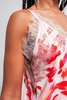 SousCategorie: Top. collier: Encolure Col V. Manches: Bretelles ajustables. Imprimer: Motif abstrait . Style: Style romantique. Tissu: Insertion de dentelle. Bord : Bords en dentelle. détails du produit: Décolleté plongeant. runs true to size. S.