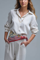 Chemise à col montant sophistiquée à rayures crème