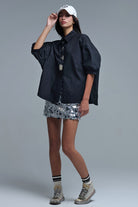 Chemise décontractée en popeline à manches 3/4 avec détails de boutons en noir