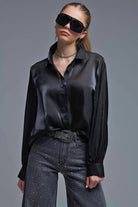 Chemise noire élégante en satin de soie