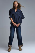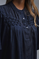 Chemisier décontracté de style bohème en marine avec détails brodés