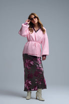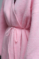 Elégant cardigan rose en maille enveloppante