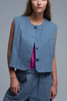 SousCategorie: Veste sans manches. collier: Encolure ras de cou. Manches: sans manches. Imprimer: motif à rayures. Coupent: Coupe décontractée. Style: Style de tous les jours. Poches: Poches sur le devant. Fermeture : Patte de boutonnage. runs true to size. S.