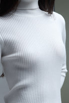 Rolled Turtle Neck Ribbed Sweater in White