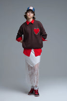 Sweatshirt tricoté avec texte et cœur brodé en marron