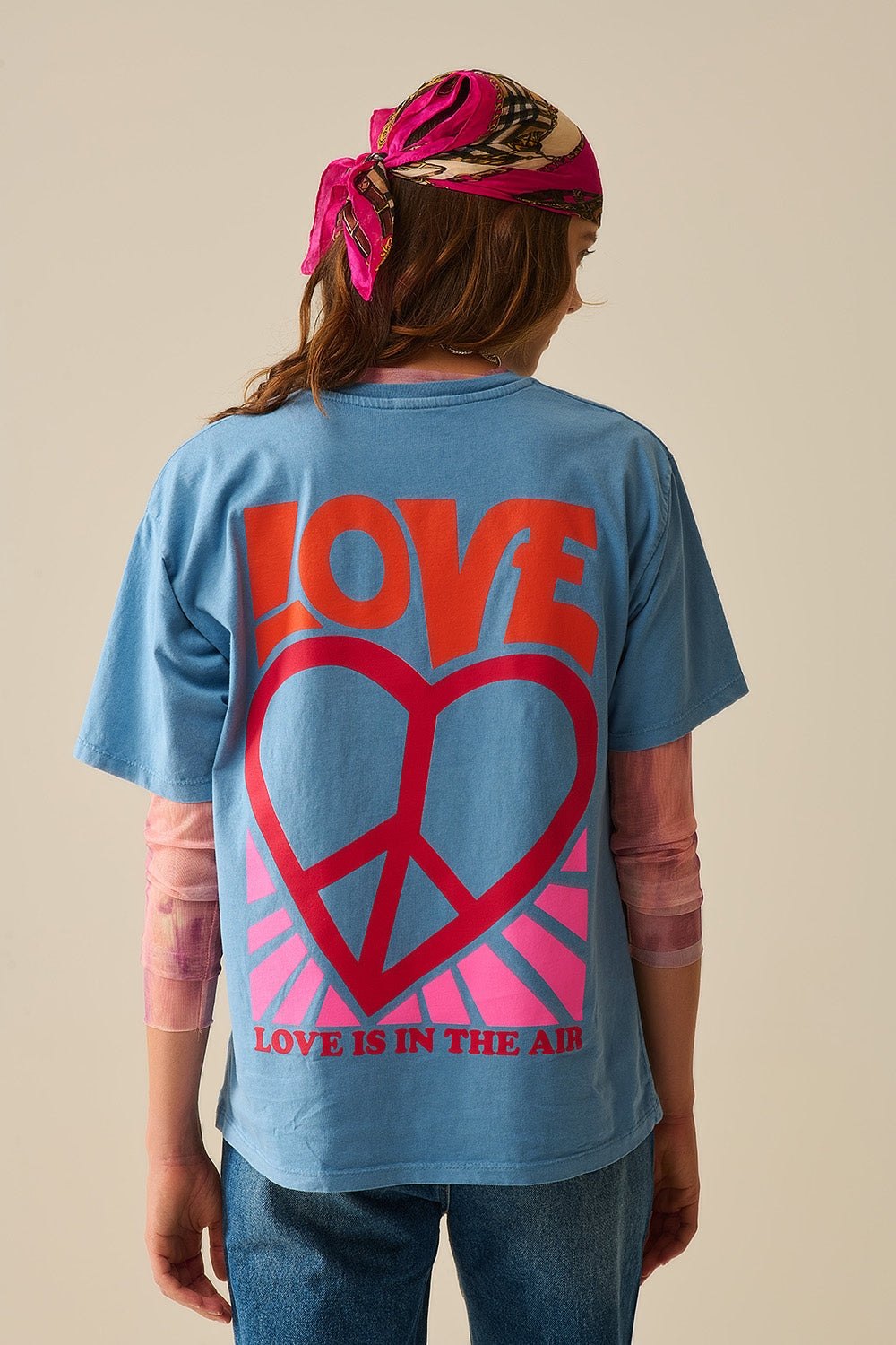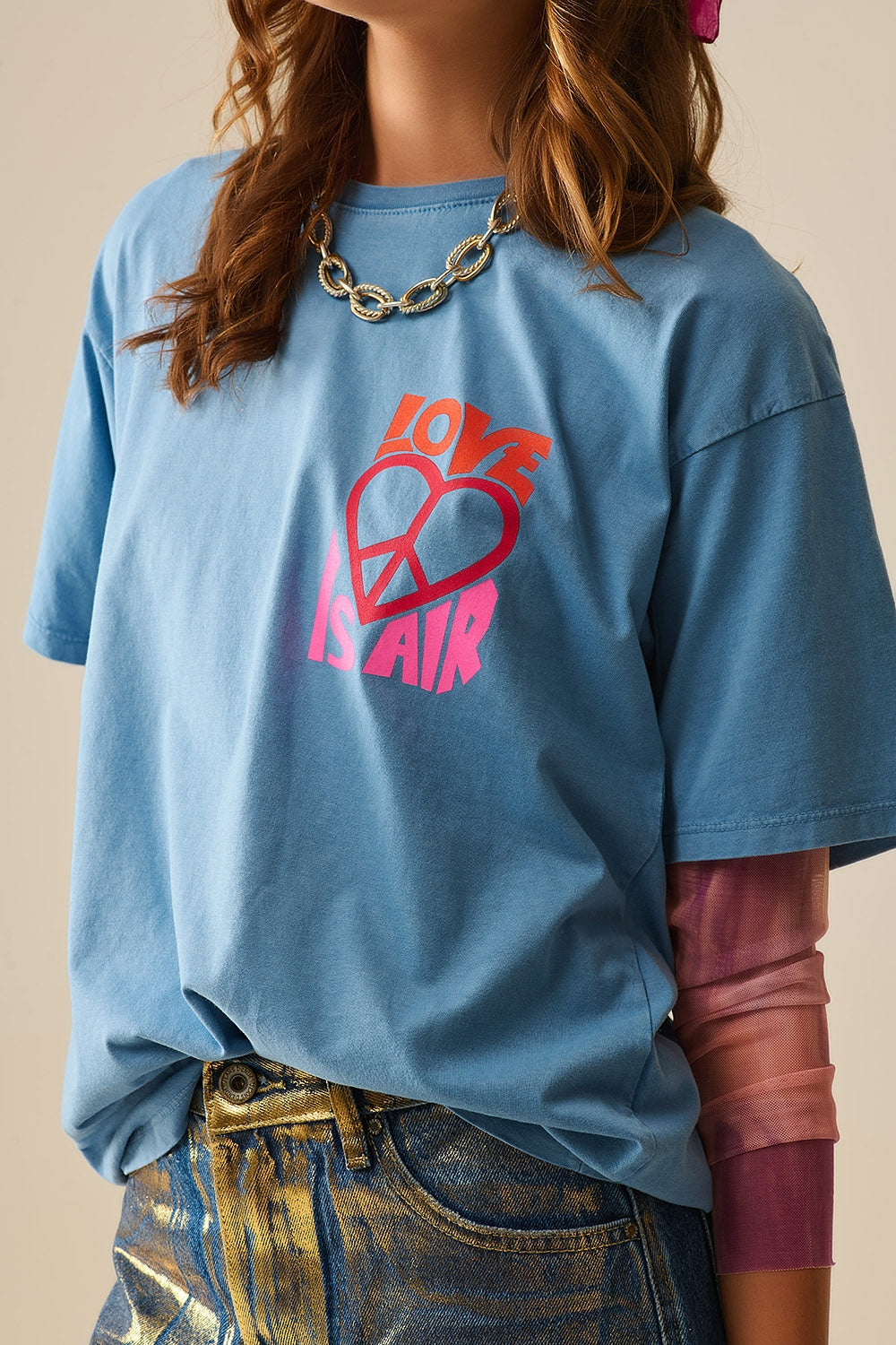 T-Shirt bleu fabriqué en Italie avec le logo Love is Air et Heart with Peace