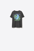 T-shirt noire fabriquée en Italie avec imprimé graphique tropical