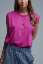 T-shirt sans manches en coton fuchsia