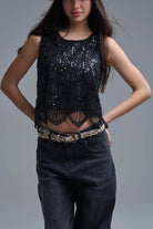 Top court chic à sequins Noir