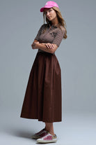 Robe avec top rayé Polo et jupe midi en popeline en brun