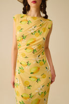 Robe en tulle avec volant sur le côté imprimé jaune citron
