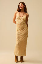 🔹 Coupe / Forme : Coupe moulante, longueur maxi, bretelles fines réglables