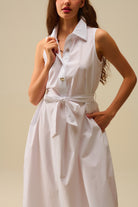 Robe midi en popeline blanche avec boutons argentés en forme de cœur