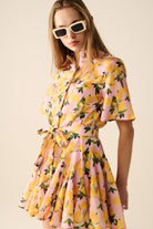 Robe romantique avec ceinture imprimé citron et manches courtes en rose