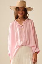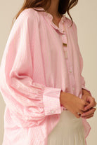 Apportez une touche de douceur et de légèreté à votre dressing avec cette blouse rose à rayures. Sa coupe oversize et ses manches ballon lui confèrent un charme subtil et une allure facile à vivre au quotidien.