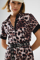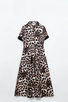 Robe longue boutonnée à imprimé léopard avec détails en satin