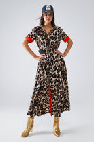 Robe longue boutonnée en léopard avec détails rouges