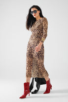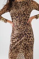 robe midi bodycon à manches longues transparentes et imprimé léopard