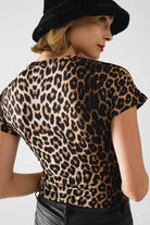 T-shirt Spandex imprimé léopard avec nœud