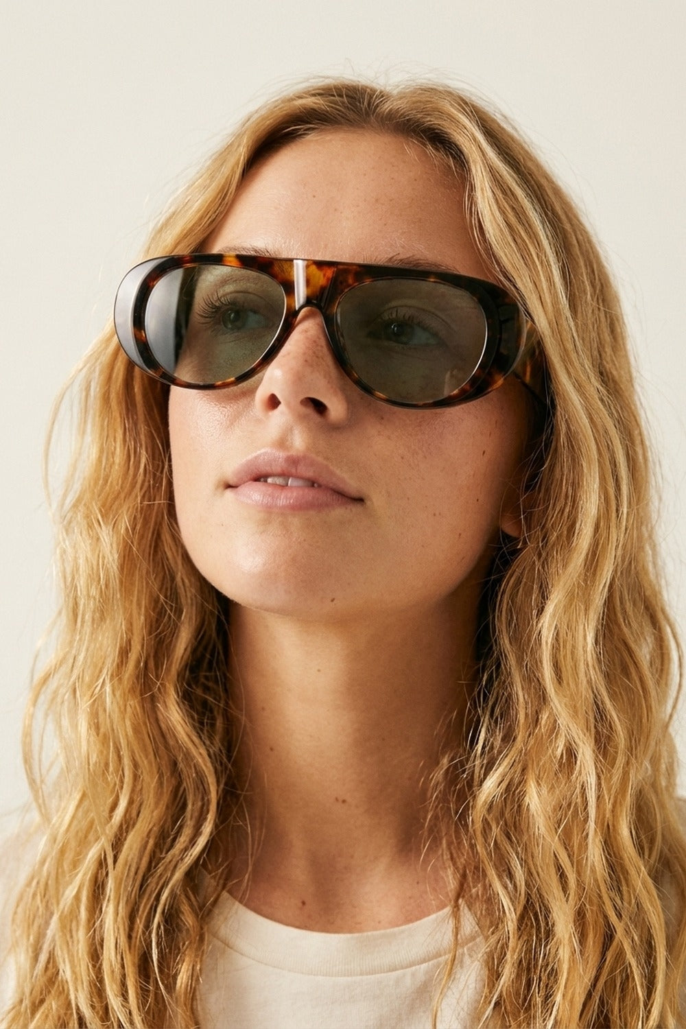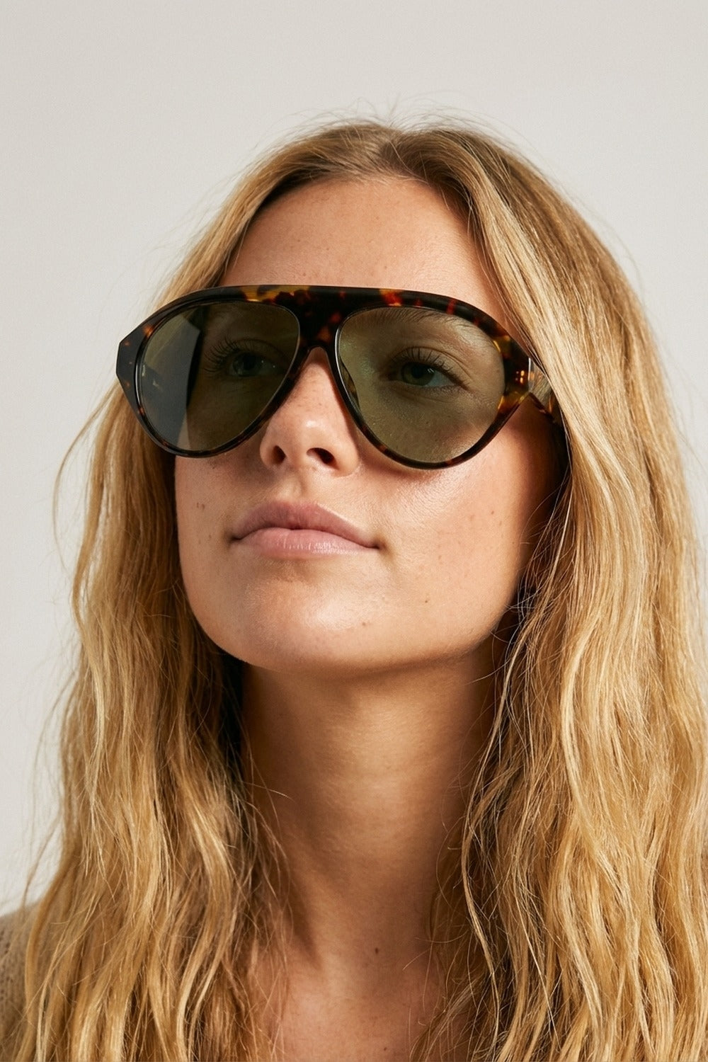 Lunettes de soleil ovales larges avec monture écaille de tortue et verres verts