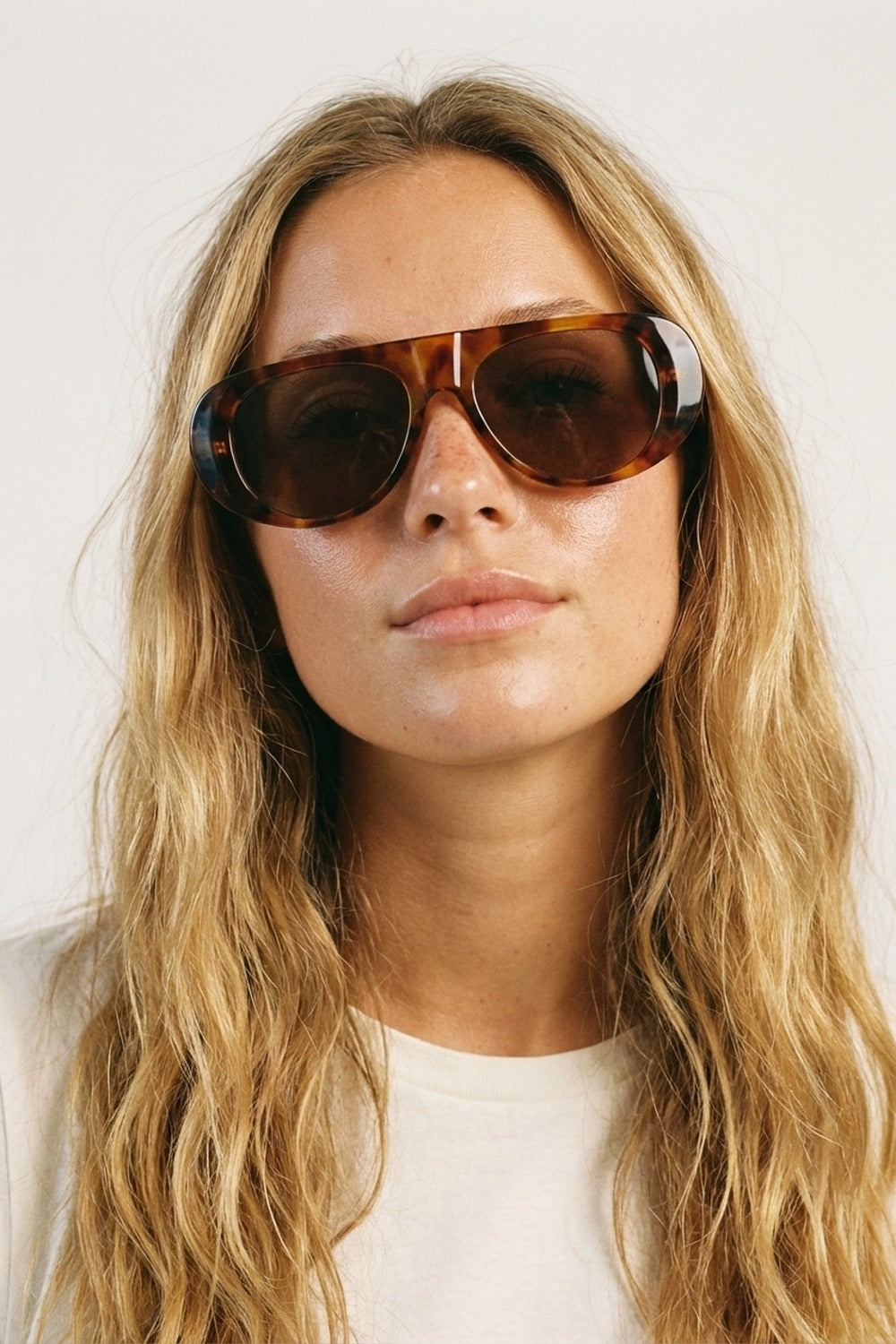 Lunettes de soleil surdimensionnées avec monture écaille et verres bleus