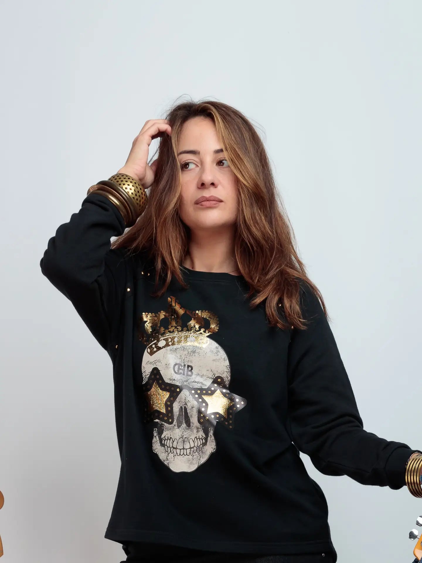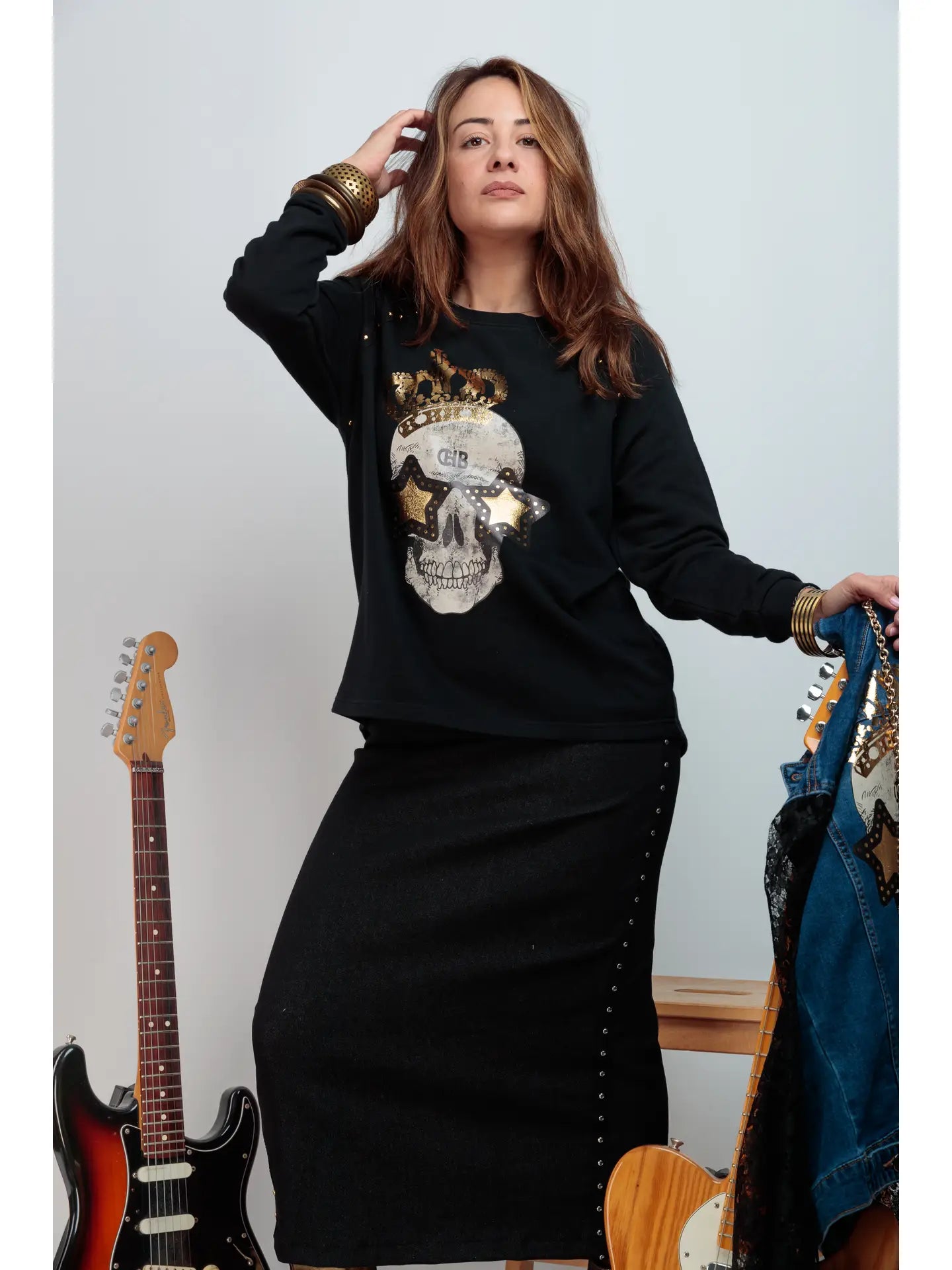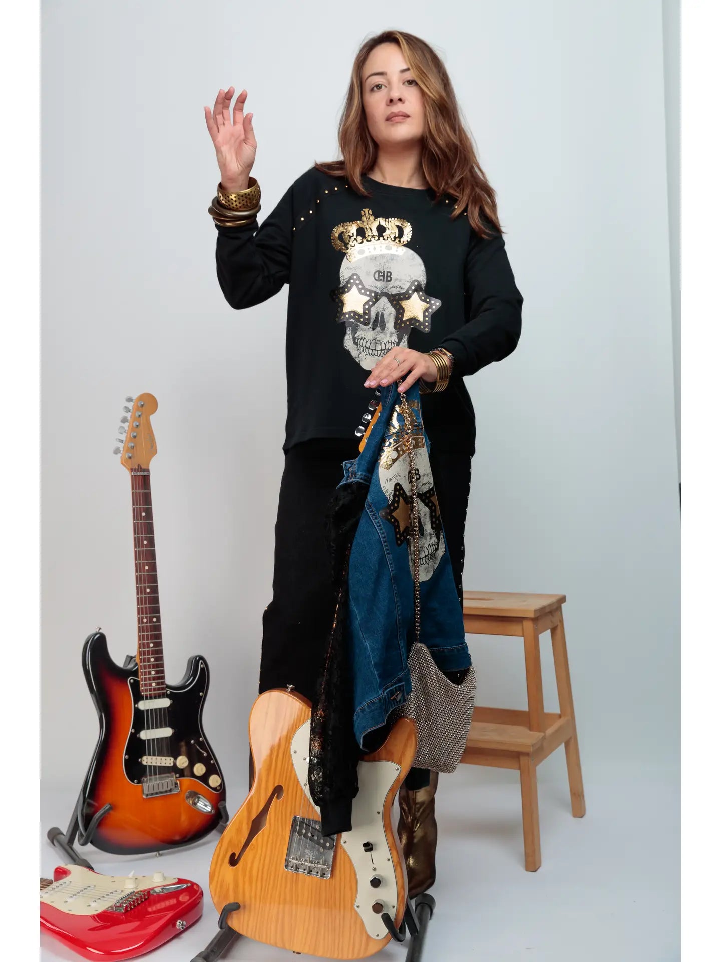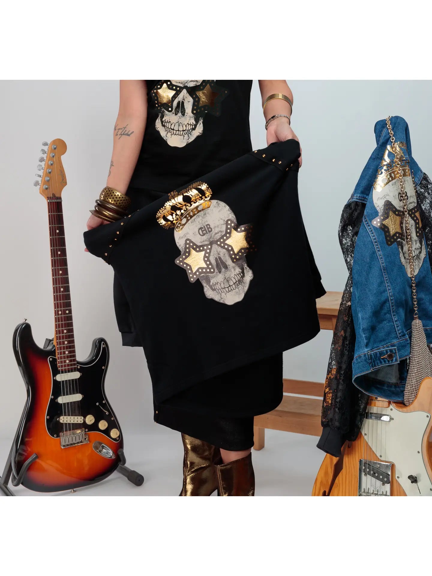 🔹 Détails marquants : clous métalliques sur les coutures des manches, imprimé skull festival affirmé, finitions soignées