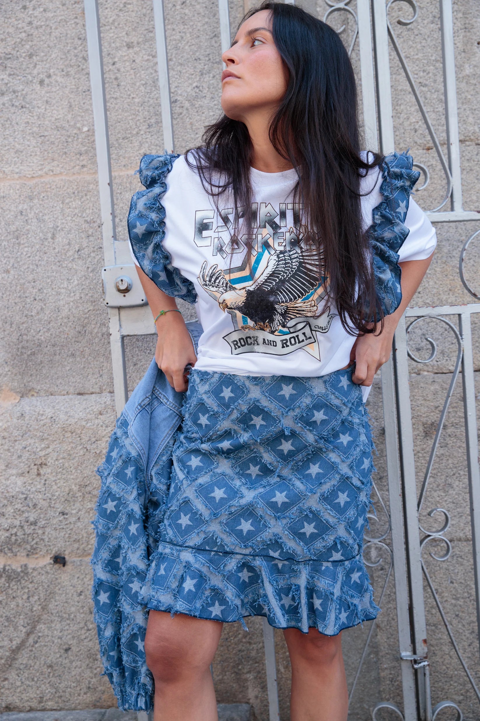 Jupe en denim bleu STAR – Détail texturé et féminité subtile