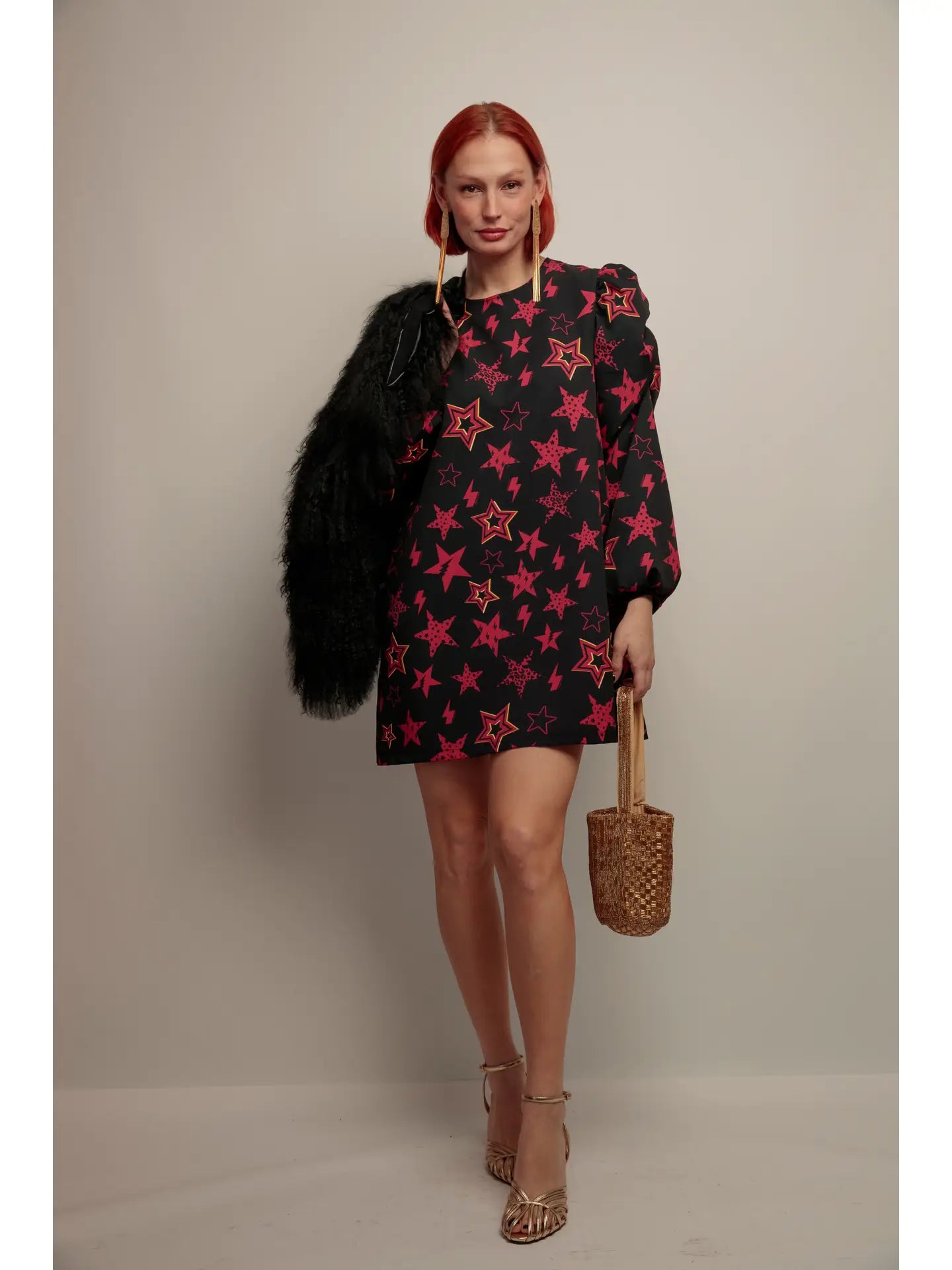 Robe courte imprime etoiles grenat femme – Essence Fete