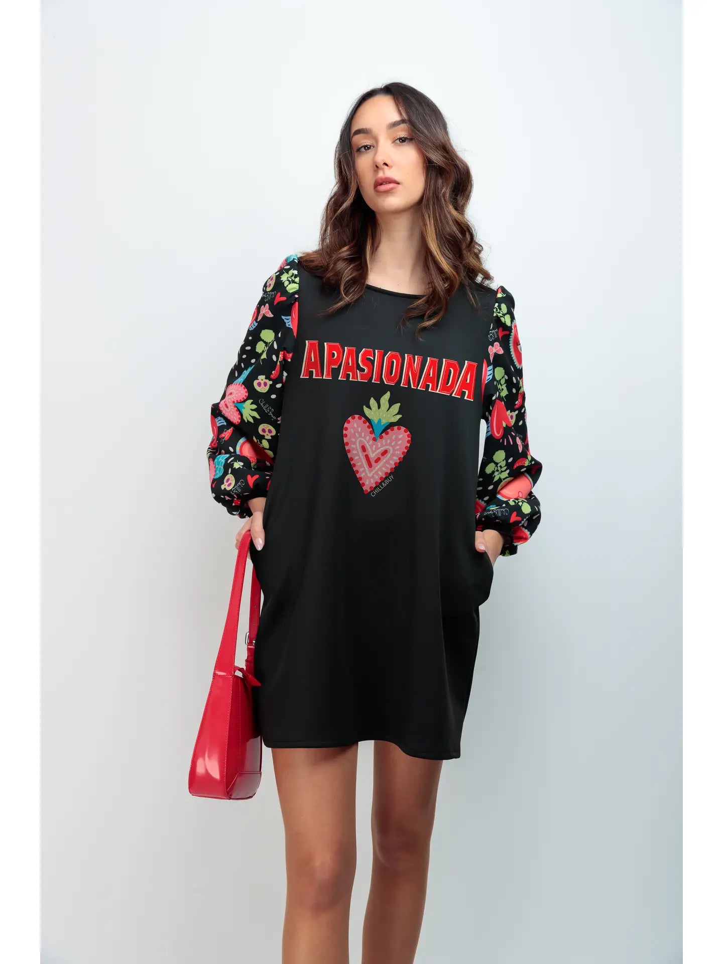 🔹 Détails marquants : imprimé cœur mexicain rouge et corail sur les manches, inscription Passionate assortie sur le devant, poches pratiques et discrètes