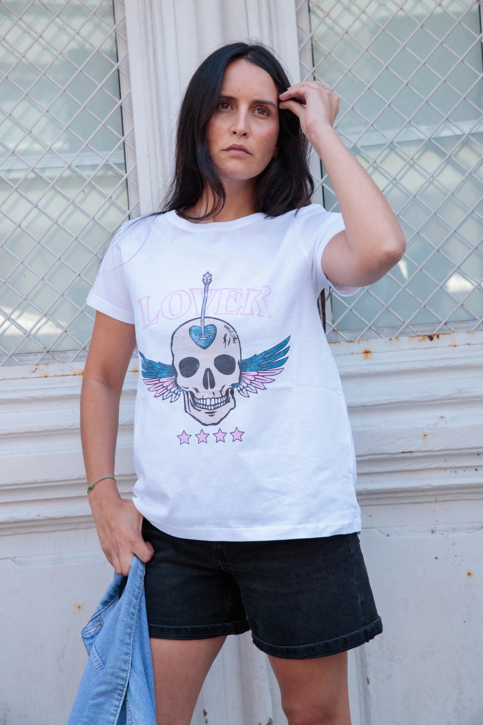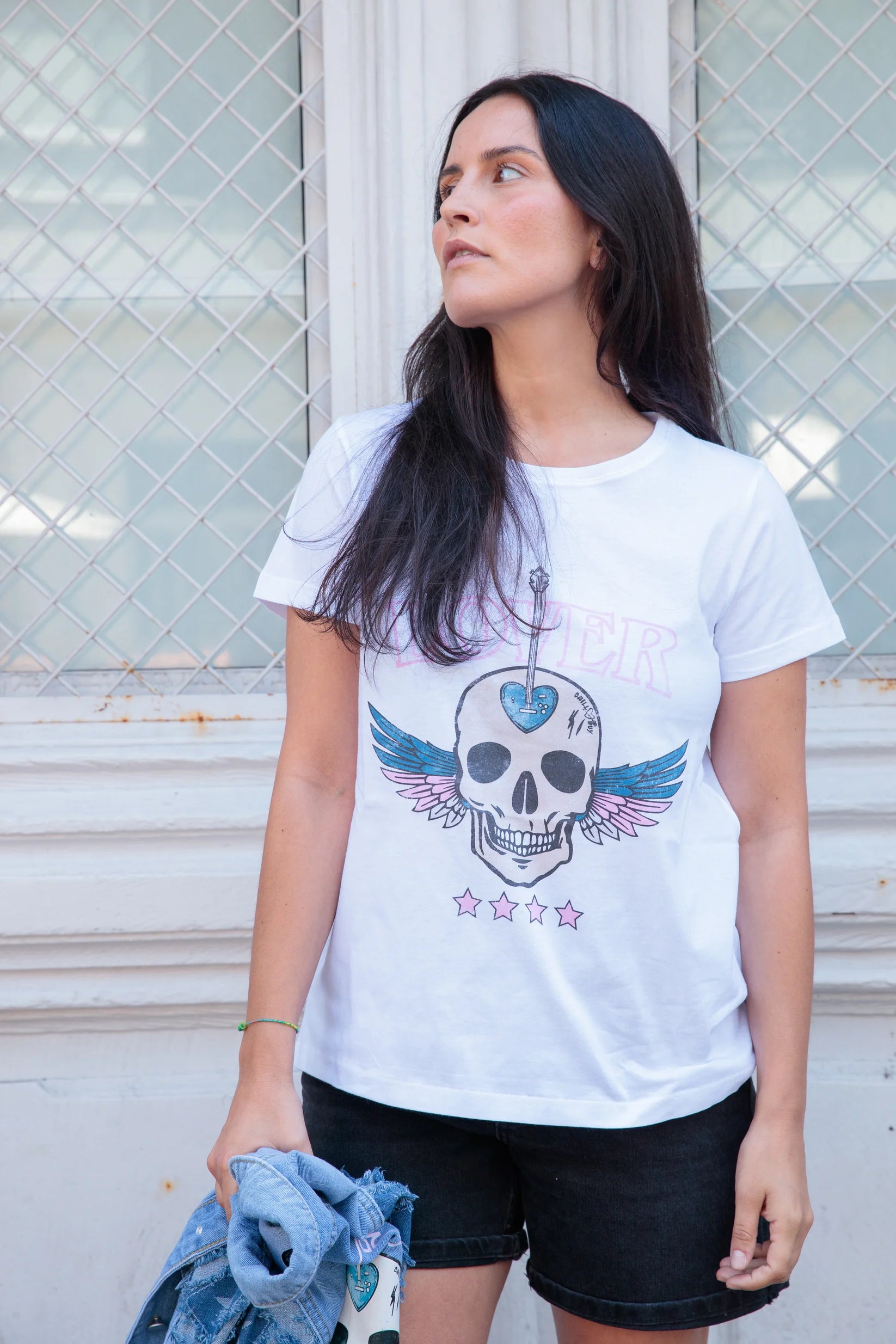T-shirt SKULL LOVER blanc femme – Coupe fluide et esprit rock discret