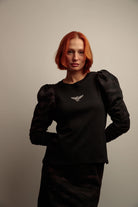 Conseil mode : a associer avec une jupe taille haute ou un jean noir pour mettre en valeur le volume des manches et le detail brode