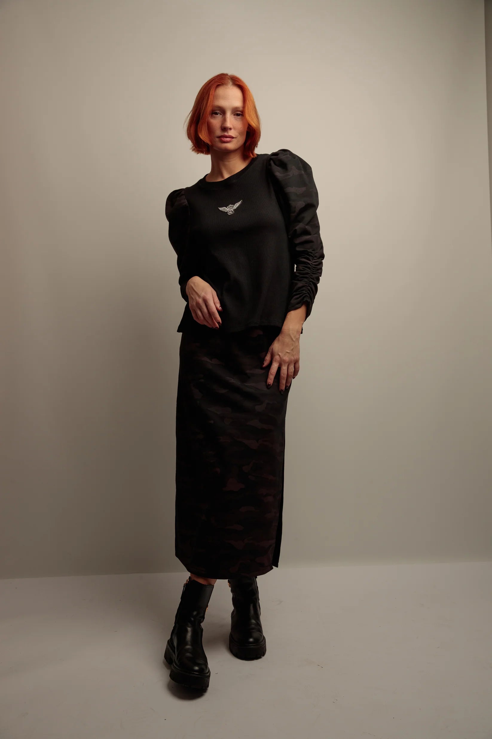 Coupe / Forme : top ajuste avec manches longues bouffantes
