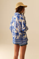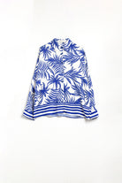 Blouse Décontractée à Motif Tropical en Bleu et Blanc