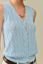 Gilet en maille pointelle avec bords festonnés en bleu bébé
